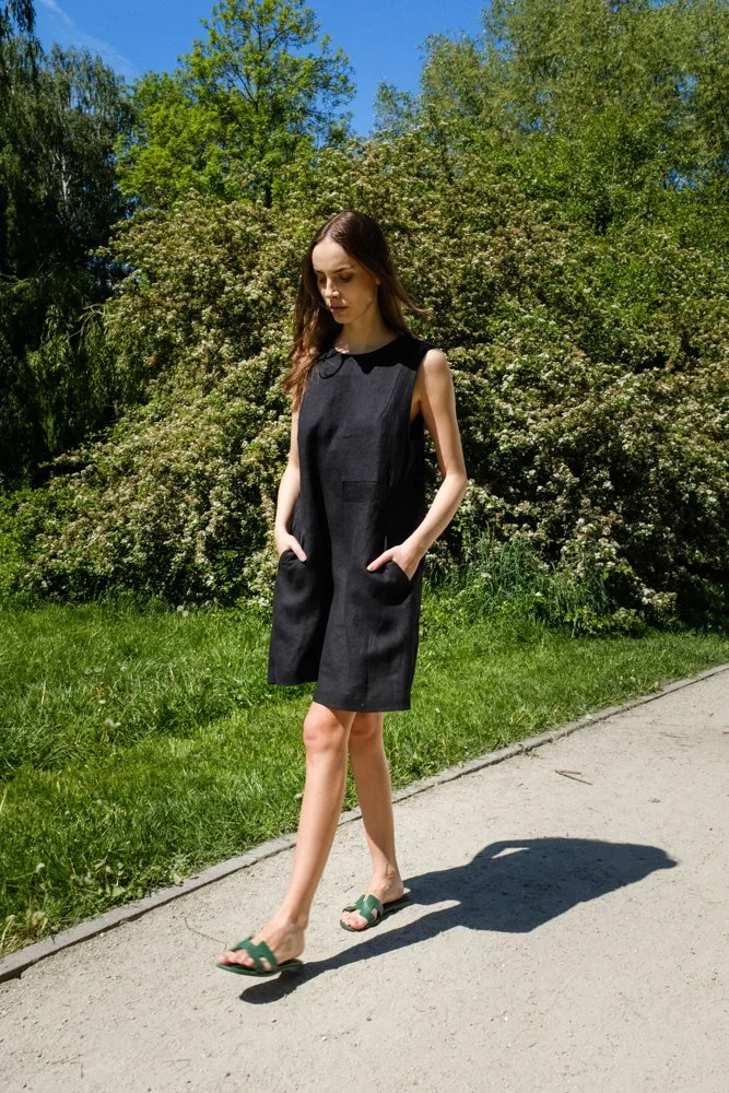 Classic and chic. Our dress is crafted from 100% linen, and is perfect for both beach days and evening wear. It features an elegant high neckline and has a relaxed, A-line silhouette. Style yours with espadrilles and gold jewellery.